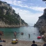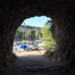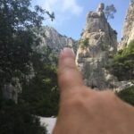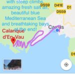 This was a big highlight of our trip to Cassis. Hiking is a passion of ours so we knew we wanted to conquer the trails to the hidden inlets. We had heard and would agree that the best time to get started is early in the morning. The sun beats down on the limestone and it heats up fast. Glad we brought a lot of water, as suggested by the tourist office it was much appreciated. Yes, it is heavy to carry but I promise, you will be glad you did. We hiked the long trail all the way to Calanque d’En-vau. I added a screen shot photo of our trail through All Trails below. The trail offers a lot of scrambling up and down rocks and it can be strenuous so it is highly recommended to wear good hiking shoes and bring water shoes in your backpack. The trails were crowded but that helped in not getting lost, LOL. No, really, there are great trail markers and you can also download the all trails map. There are several stunning photo opportunities and you can also pit stop in Calanque de Port Pin for a dip in the water there. We did that on our way back and it was not as crowded as En-vau.